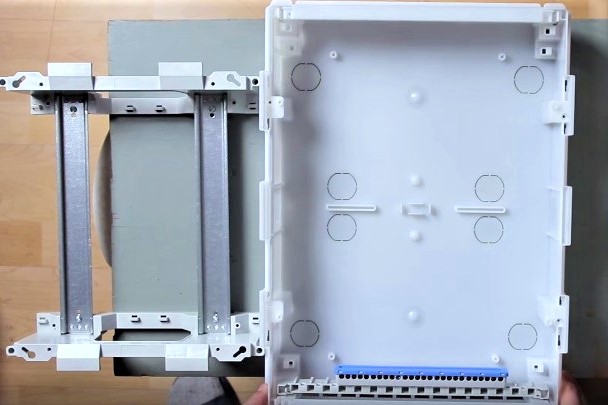 Une autre caractéristique importante est les dimensions de la boîte. À l'intérieur de la boîte se trouvent des bandes dirigées horizontalement - rails DIN.
