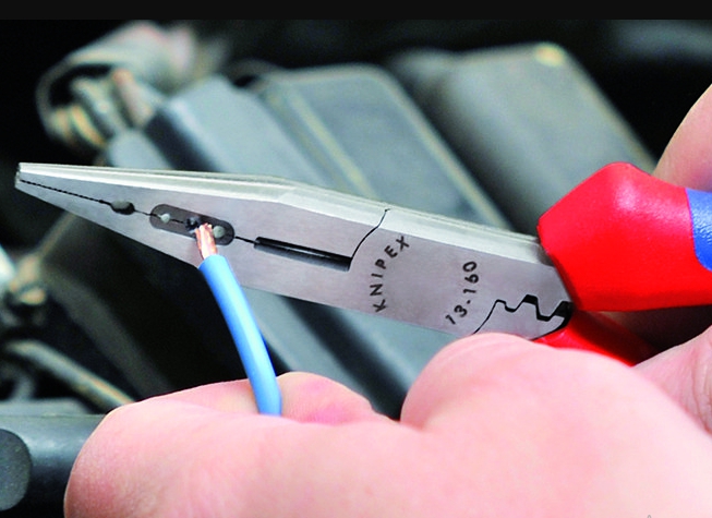 Pour le traitement des fils, des pinces avec des trous de précision de différents diamètres conviennent. Outil universel en demande de câblage.