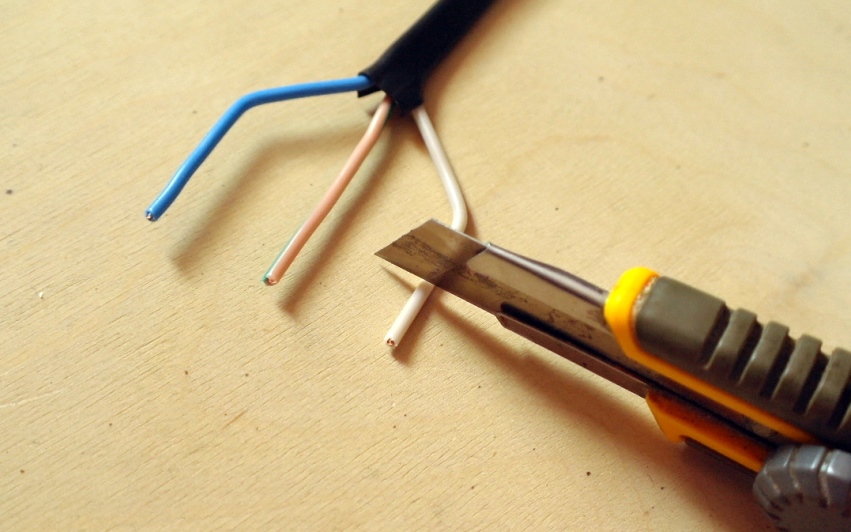 L'enlèvement de la gaine de protection avec un couteau doit être effectué avec des gants afin d'éviter les blessures. Cela est particulièrement vrai lors du dénudage d'un câble fabriqué conformément à GOST. L'épaisseur d'isolation d'un tel conducteur est beaucoup plus grande que celle du fil selon TU, et elle est plus proche des noyaux, ce qui complique le travail.