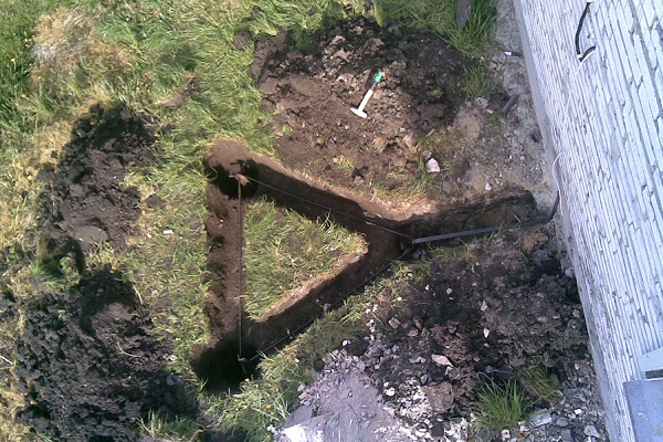 - Nous creusons une tranchée de la maison au site d'installation du système d'électrodes de terre. Sa profondeur et sa largeur sont d'environ un demi-mètre.