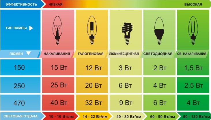 Even in devices that have equal power, the efficiency can vary significantly. It is more expedient to compare different types of lamps precisely according to the parameters of the light beam.