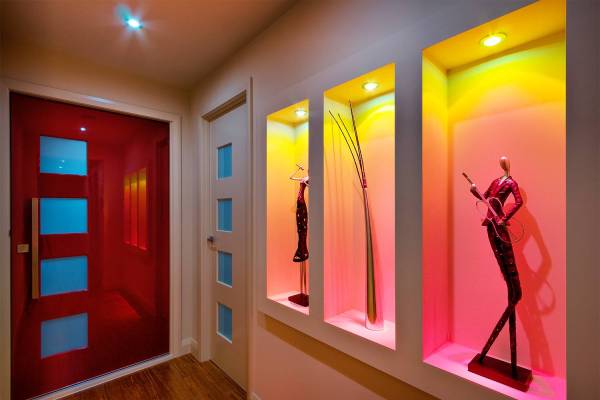 And most importantly - color lighting is more of a decorative nature, and is not the basis of the lighting system. It is good for highlighting individual zones or creating attractive compositions, but is inappropriate in places of a “working” plan - in offices, in the kitchen, in the workshop, in the nursery.