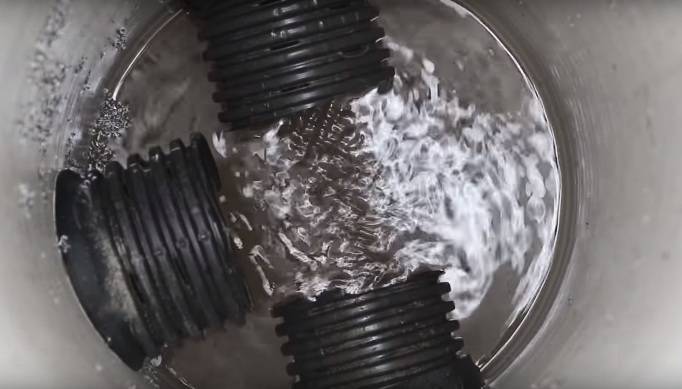3. Viewing wells are arranged every 36 meters of a straight section or when the drainage pipe is turned. This is done to flush the area in case of siltation. It is important to pay attention: in the inspection wells, the pipes are broken, and not just a hole is made. It is clearly demonstrated in Figure 2.