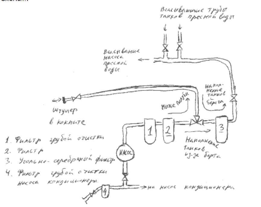 I am enclosing a diagram that I have sketched out by hand, so that you can better understand how the filter system will look in general. I advise you to read about the filters of the Moscow Filterroff Laboratory and see their range. I also recommend taking pumps and pipes with 1-inch connectors.