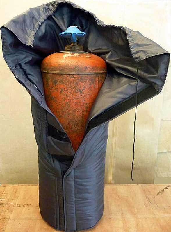 Blankets for household gas cylinders should be used at temperatures close to -15 degrees Celsius. When the thermometer reaches -30 degrees, the operation of the balloon without a thermal blanket becomes impossible. This process is especially complicated in the winter season, as the freezing of the tank accelerates as the air temperature decreases.