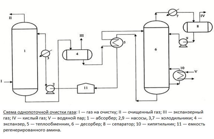 For half a century, the most popular and popular technology for the extraction and removal of hydrogen sulfide and carbonic acid from natural fuels has been the chemical purification of gas using an amine sorbent used in the form of an aqueous solution.