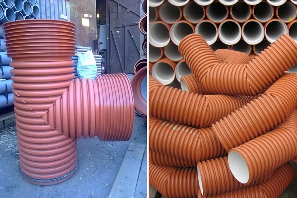 Like smooth outdoor sewage products, corrugated elements are usually orange, red or brown, however, some manufacturers produce pipes of this type of other tones, for example, black.