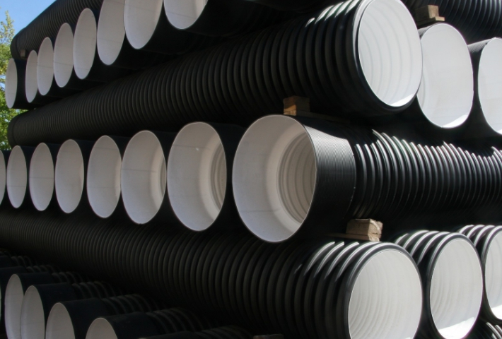 The assortment of the company includes a variety of polymer products, including two-layer corrugated pipes of various sizes, designed for laying an external sewer and cable.