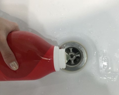 - Also, without looking in or bending over, at a distance of your outstretched hand pour water into the drain.