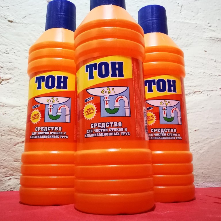 A bottle of Rorax is 1 liter. The cost of such an amount of liquid for washing sewer pipes is within 400 r. 1 pack is enough for 4 uses at a recommended flow rate of 250 ml.