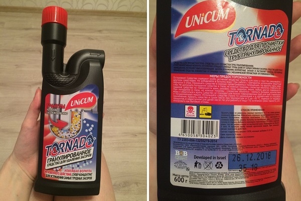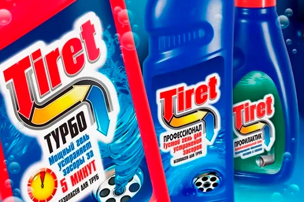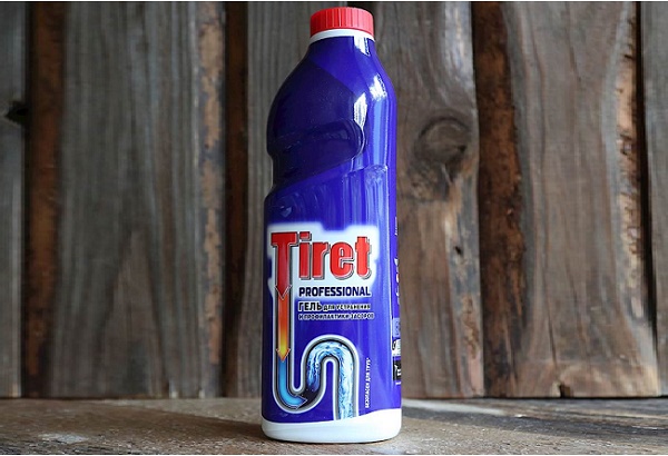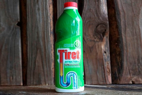 Antibacterial Tiret not only fights against clogged pipes, but also eliminates unpleasant odors that continually appear from the sink drain in the bathroom or in the kitchen. The composition includes a rather intense fragrance. Price in the region of 250 p. for 500 ml.