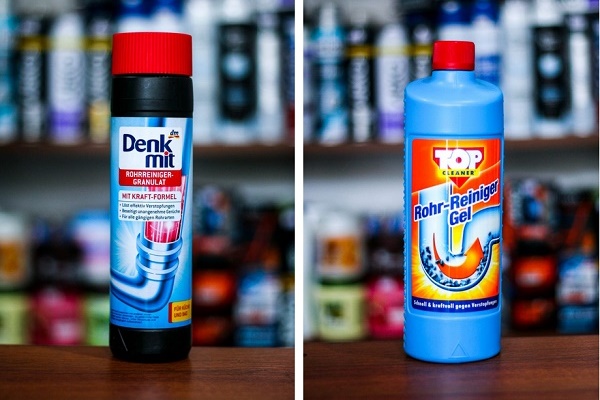 The chemical method of cleaning pipes is to aggressively block and decompose the organic substances in its composition. Simply put, cleaning products dissolve the cork.