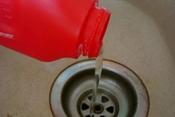 - Pour the product into the drain on an outstretched arm. Do not look into the hole, a fountain of poisonous splashes, foam and fumes can fly out from there.