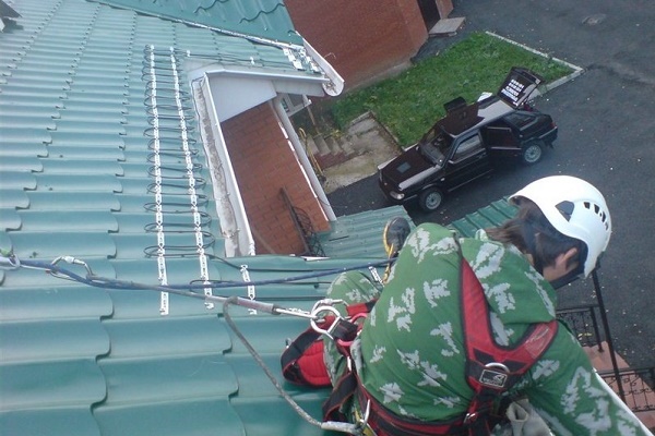 Icicles and conglomerate from frozen snow and ice accumulate on the edges of the roof. From time to time they fall down, threatening the safety of the people below and their property, the integrity of the drainage system and decoration elements of the facade.