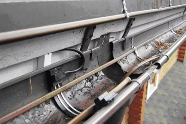 The heating cable is mounted inside the gutters. Usually two threads are laid here, the power is selected depending on the diameter of the gutter. Inside the gutters, one heating core is laid. Particular attention should be given to pipe outlets and funnels. Usually, additional heating is required here.