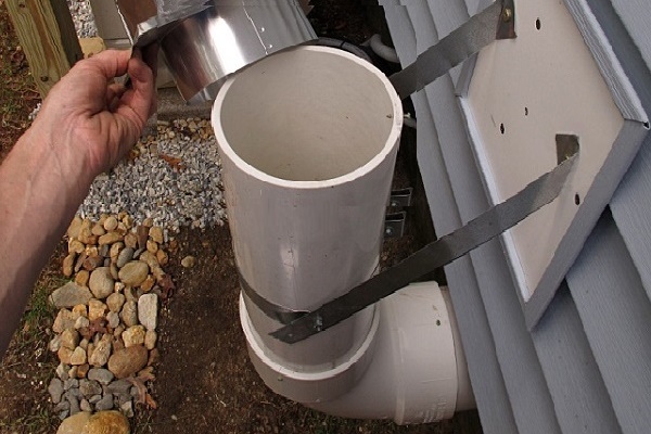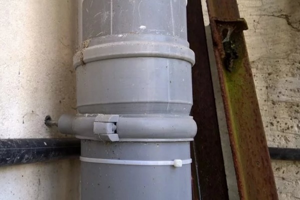 Pipes are connected to one another using rubber seals. They fix the ventilation line to the wall of the house with metal clamps, laying them on the surface of the pipes through rubber gaskets.