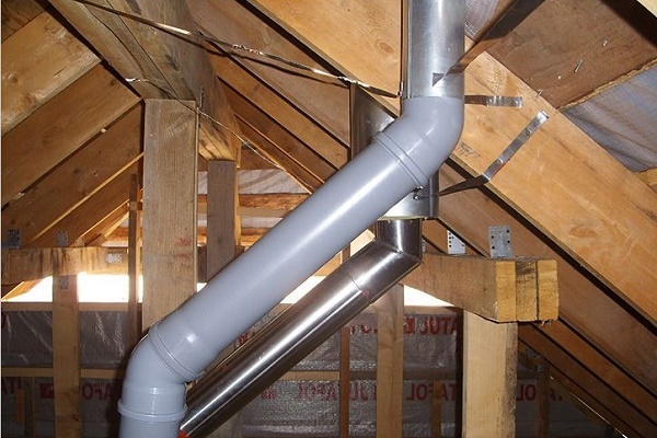 For projects of private houses, it is sometimes permissible to introduce a scheme for installing a ventilation sewer riser, in which the upper section of the pipeline remains in the attic area.
