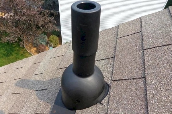 The upper point of the vented ventilation pipe should be above the roofing horizon of at least 300 - 700 mm. These values are recommended for installation on houses with flat roofs or where the roof is made under a slight slope. The steeper the roof slope, the higher the height of the end part of the ventilation pipe.
