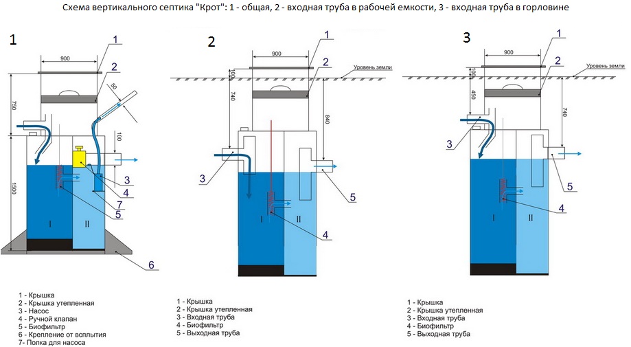 The next fact that speaks in favor of the “Mole” is a simple installation. Only a foundation pit is needed, no concreting or other “wet” work is necessary, and even a concrete slab at the bottom to fix the septic tank is also not required. Although it should be remembered that the foundation pit for the vertical model will need a fairly deep, horizontal septic tank is even easier to install.