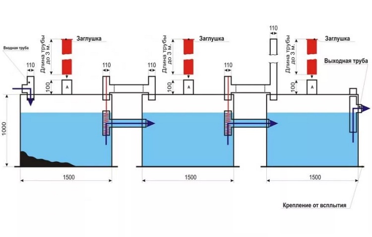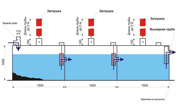 Nevertheless, this is noticeably higher than the quality of wastewater treatment in an ordinary cesspool with overflow. If there is a desire to improve the quality of waste processing, you can add a mole septic tank with a compressor.