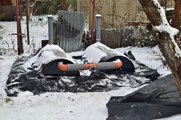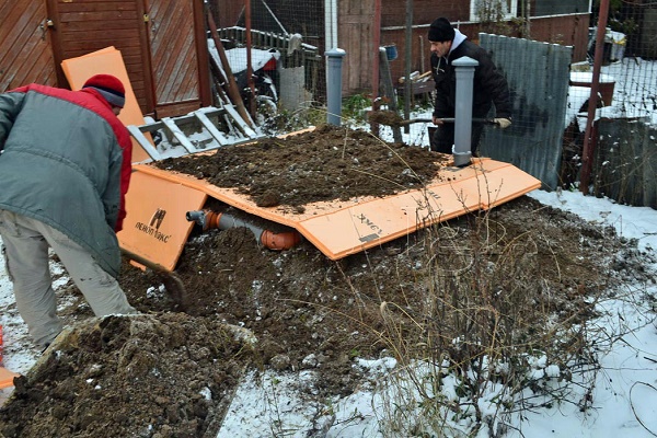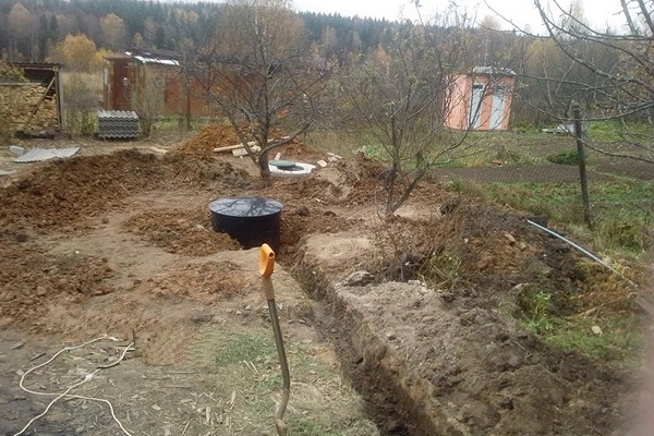 From the house to the septic tank and from the septic tank to the drainage well conduct trenches for laying sewer pipes. If a separate pipe is used to drain gray drains, another trench can be made for it. It is recommended to insulate the pipes to prevent them from freezing in the winter.