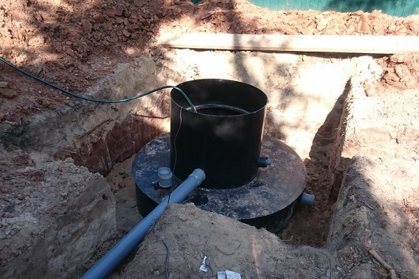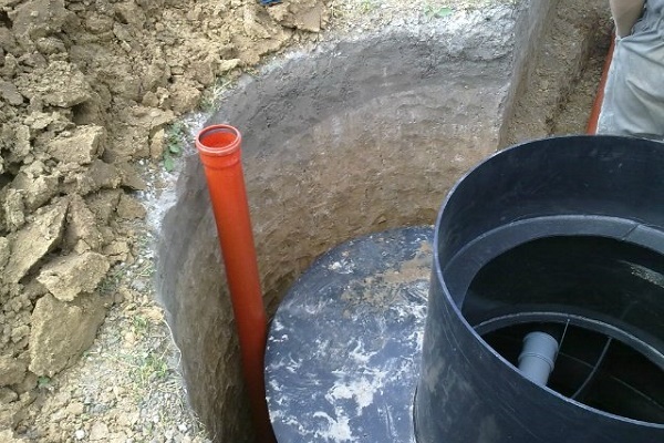 Sewer and drainage pipe are connected to the corresponding pipes of the septic tank. Installation of additional elements, for example, a drainage pump, can be performed both before installing the septic tank in the pit, and after it.