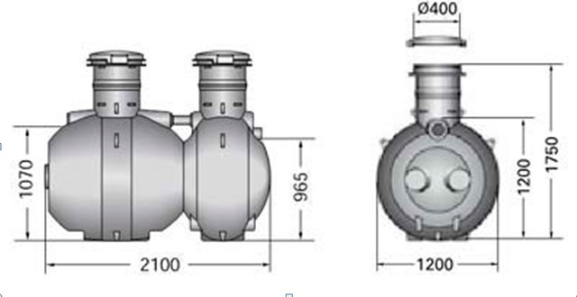 The system consists of two interconnected tanks, which are located in one housing. In the first tank, heavy fractions of domestic wastewater are deposited.