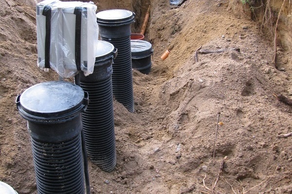 Corrugated pipes are laid from the septic tank to the distribution well. They also serve as the connection between the distribution well and perforated pipes. Also included are plugs, top manhole covers and filter cloth.