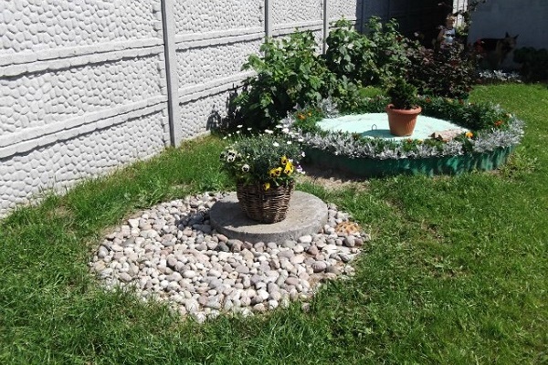 When filling the upper part of the tank, clay is used to create a moisture-proof layer above the tank, and plant soil is used to decorate the tip of the drive.