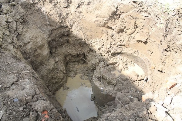 If the soil in the excavation pit crumbles and poorly holds the walls, to prevent mechanical damage and provide additional protection, the pit walls are reinforced with bricks.