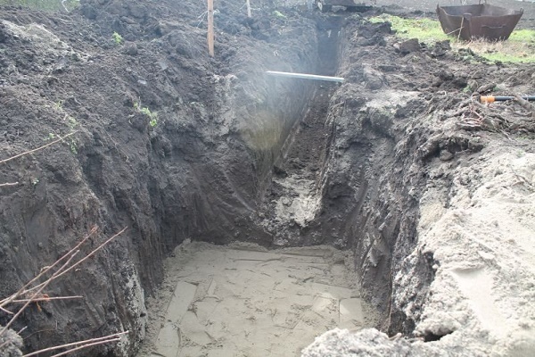 Having leveled the surface, they begin to dig a pit. To prevent freezing of the effluents in the drive during the cold season, it is buried below the horizon of seasonal freezing of the soil. When extracting land, the upper fertile layer can be evenly distributed over the garden beds.