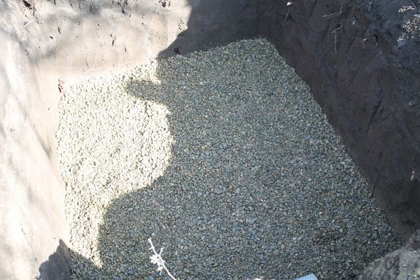 To reduce excessive pressure on the filled tank in the cold season, voids between the walls of the pit are filled with a sand-and-sand mixture. It is laid in layers and rammed every 5-7 cm.