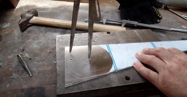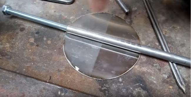 Production material - a sheet of stainless steel 2-2.5 mm thick; metal rod 6-7 mm (hollow tube); a pair of 8 mm bolts, a piece of metal fittings or a nail.