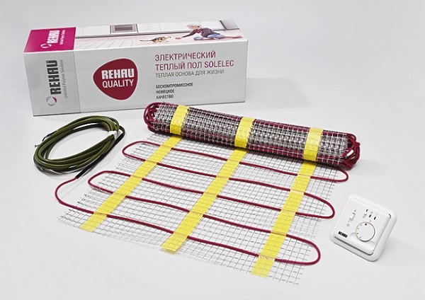 This is the same cable floor, but in a more convenient form: the wire is fixed on a special grid (width 50 cm, length up to 30 m). The use of mats significantly speeds up the installation of the electrical system. They can not be laid on the entire floor, but only on the part that needs heating, bypassing the areas where furniture or plumbing will be installed.