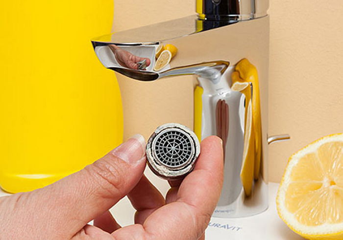 To do this, you need to grab the aerator with pliers, unscrew it. Remove the filter mesh from the device, then rinse the parts thoroughly, cleaning them of small debris and plaque.After cleaning, the appliance is assembled and inserted back into the tap.