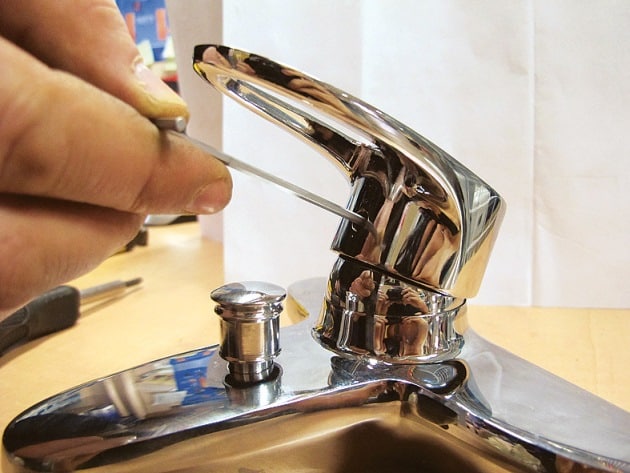 - The screw part connecting the lever with the rod, where the water is regulated, is unscrewed with a hexagonal wrench.