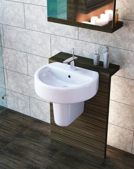 A washbasin with a semi-pedestal will look great in a compact bathroom, it is also often used when decorating office spaces in offices or at enterprises.