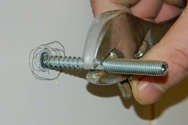 Using a hammer, we expose the plugs into the holes made, into which we carefully and carefully screw the brackets. It is important to ensure that their position is strictly perpendicular to the wall.