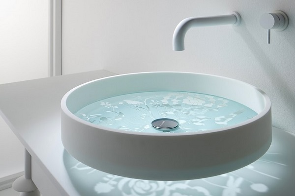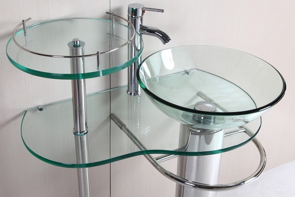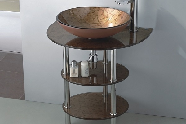 Another interesting material used in the production of mini-washstands is tempered glass. Light, transparent or colored items are quite rare, which makes them an exclusive item in interior design.