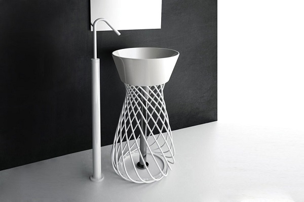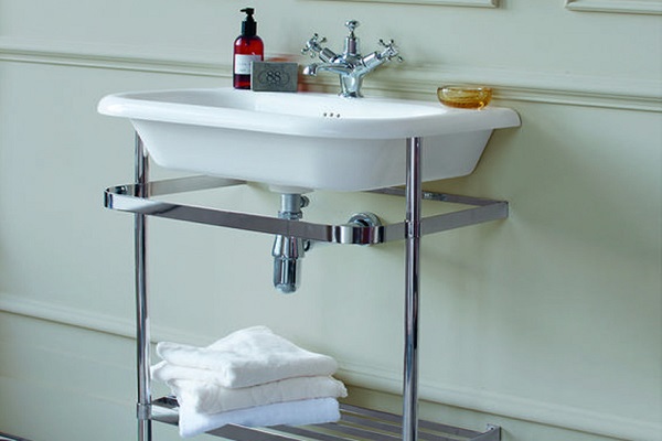 Especially for some interior styles (minimalism, hi-tech, Victorian, oriental), manufacturers produce metal washstands.