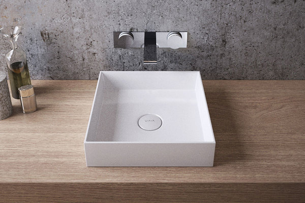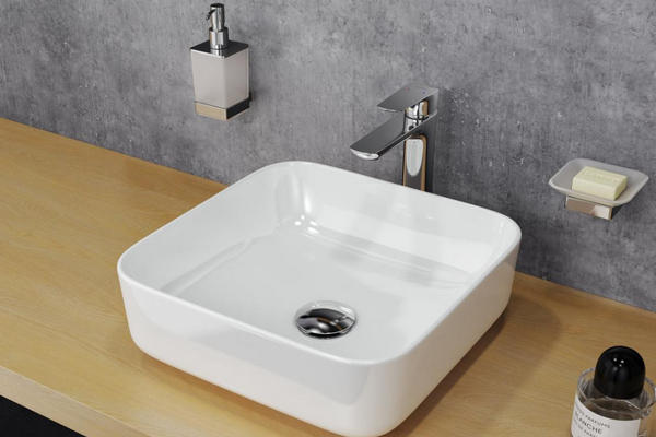 A small square-shaped sink looks organically in interiors of different directions.
