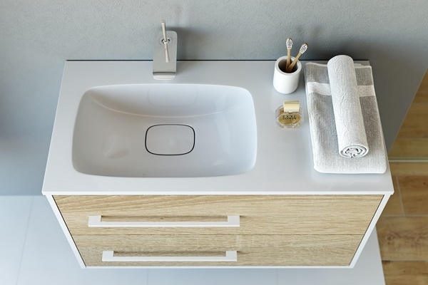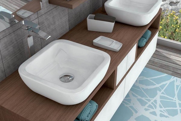 A simpler version of the built-in washbasin. Exclusively because the sink itself is used as a countertop, which has additional wide sides.