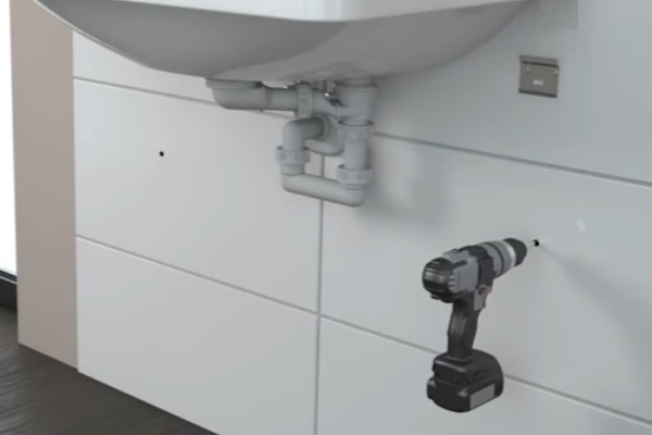 The preparatory stages of work have been completed. The sink is suspended and connected to the sewer outlet. Now you need to install and fix the hanging pedestal: