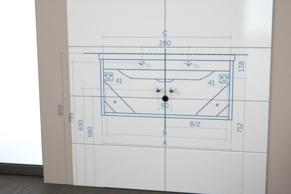 Be sure to check all lines for evenness with the help of a building level, as drawing "by eye" can lead to unpleasant distortions. It is most convenient to do this with an assistant, then one person holds a sink or a curbstone frame attached to the wall with the level placed on top, and another with a marker or pencil marks the points of future fixtures directly in the holes intended for this.