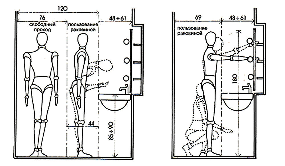- The most prudent owners use the oldest system - a practical approach. Each of the residents in the selected place should try on, performing the usual actions when washing. For a more complete effect, you can put a stool with a basin there. Thanks to this homemade “test”, it immediately becomes clear how convenient it is to use the sink, whether walls, pipes, a bathroom or other objects will interfere.