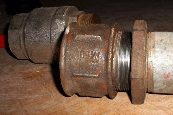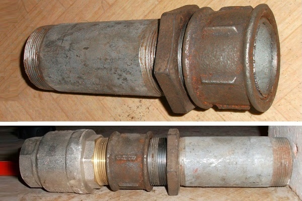 To combine the two rigidly fixed sections of the pipeline, detachable joints are used - overhangs. A long thread is made on one pipe segment - sufficient to completely tighten the coupling and lead to the second segment with short cut threads.