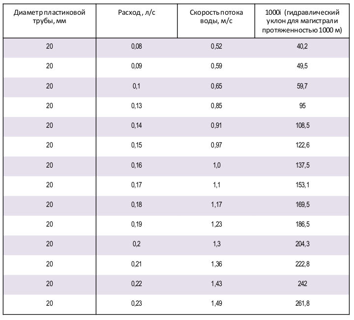 The most convenient way to calculate the hydraulic slope is the F.A. table Sheveleva. Using it, it will be possible to relatively quickly determine the hydraulic slope taking into account the diameter, material of the pipeline and the speed of water.