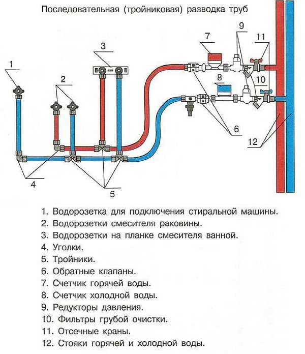 However, with a small length of the water supply system, the choice of a tee supply scheme justifies its comparative cheapness.