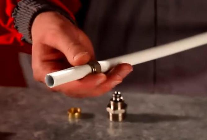 When tightening the union nut (worn on the pipe from the outside), a split ring (collet) presses on the outer surface of the pipe, as a result of which the inner surface of the pipe is tightly pressed against the fitting. As a result, a semi-detachable connection is formed, strong, but requiring a tightening from time to time.