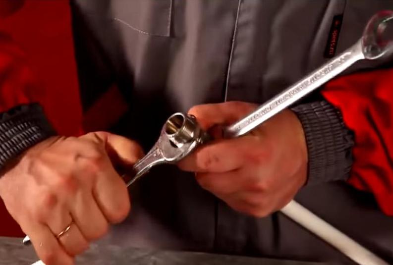 - During installation, two keys are used: one holds the fitting, the other tightens the nut. It is better to choose the sizes in advance, since they are most often non-standard. If there is no suitable size, an adjustable wrench will help.